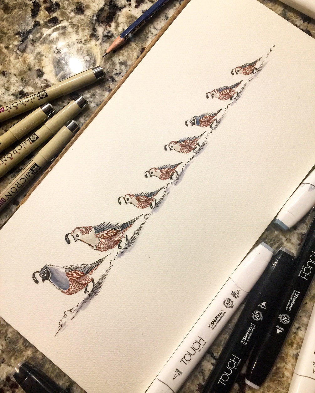 This little covey represents parents keeping their children together, happy, healthy and safe. And constantly on the run.